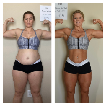 Well first off I would like to thank you Dana for this challenge. I struggle with binge eating and have had this problem for almost 5 years and I’m so happy to say this challenge is the longest streak I’ve went without binging! I’ve not only made huge physical changes but I’ve made huge mental changes and now am on my way to a healthier relationship with food. Inside the gym I feel so much stronger and more confident!