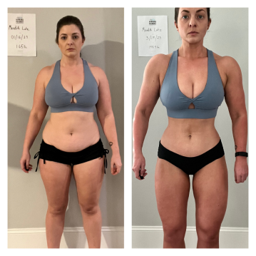 This was an incredible but trying process where I stuck with my diet, training, supplements, and 20k steps a day to lose 12 lbs, several inches off of my waist, an entire bra...
